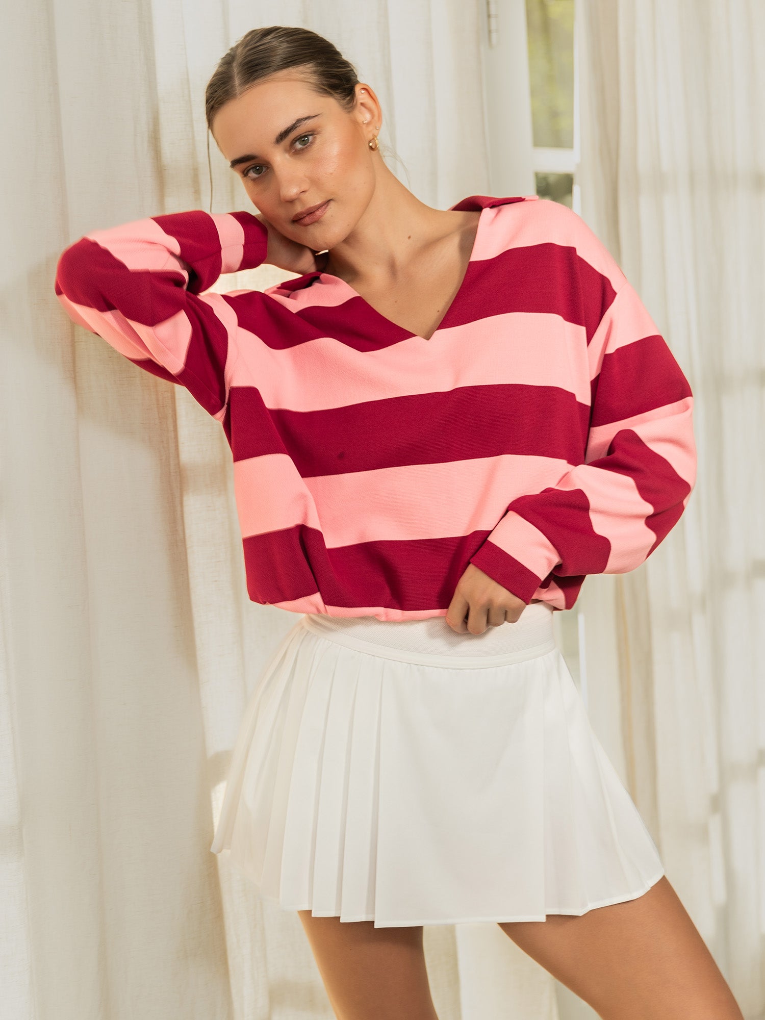 This Flat Front Tennis Skort offers a clean, polished look with built-in undershorts for comfort and performance. Made with moisture-wicking, quick-drying Fleet fabric and breathable 4-way stretch, it moves effortlessly with you through every serve, rally, and stride. Lightweight and comfortable, it’s the perfect blend of sporty function and everyday court style.