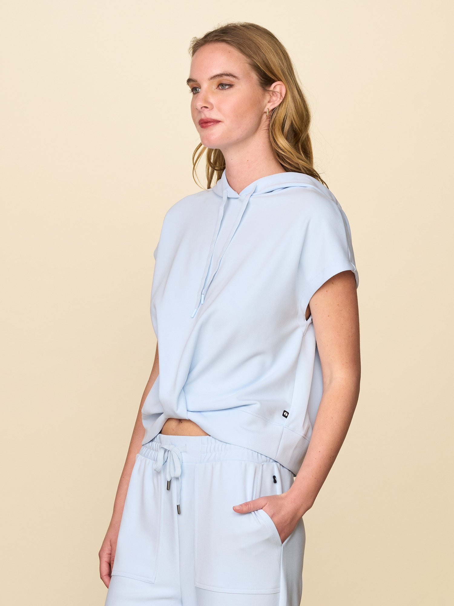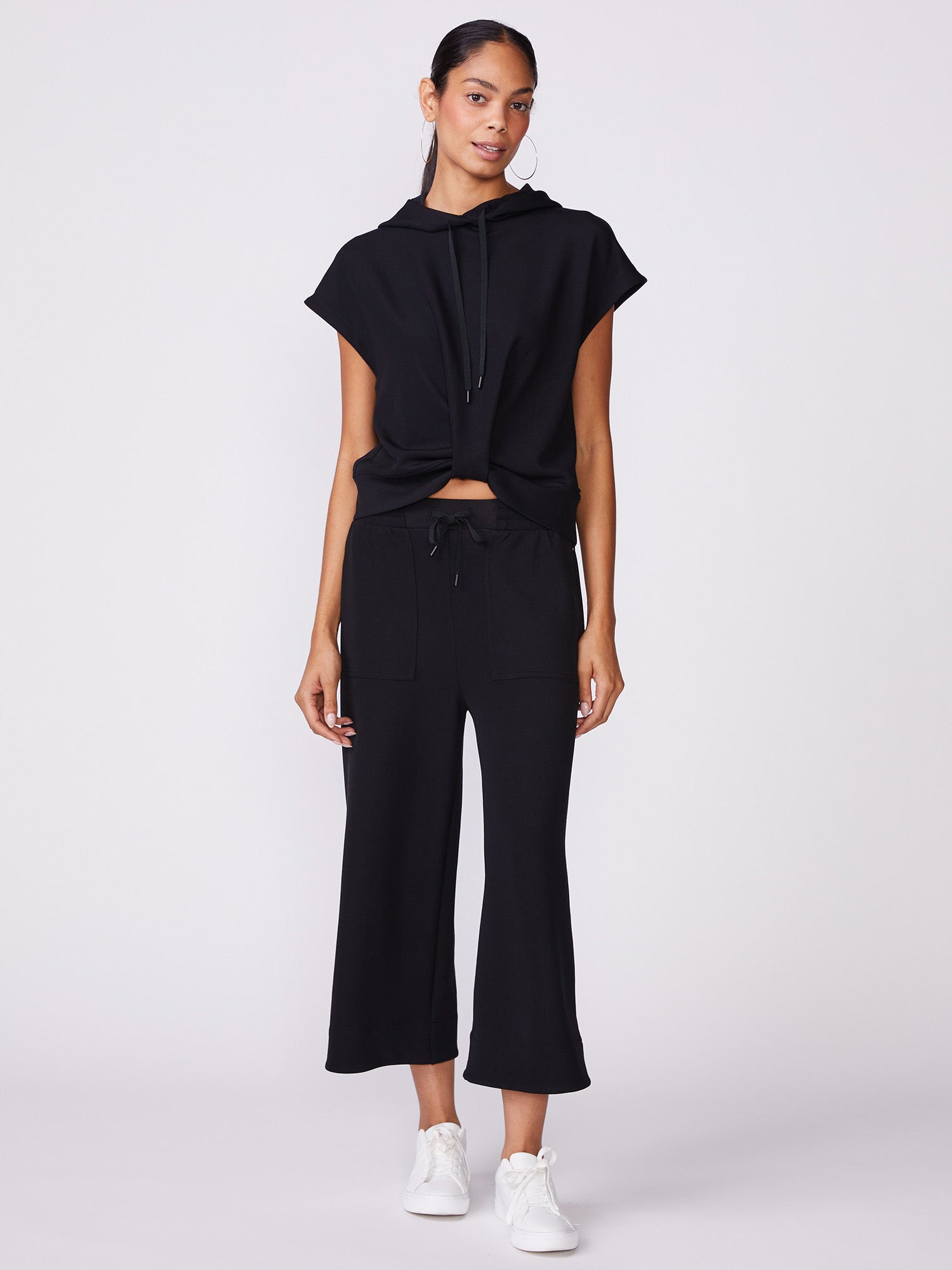 The Twist Front Hoodie is an ultra-soft and effortlessly stylish piece. With a flattering twist front detail and hood, it is perfect for lounging at home or heading out in comfort and confidence. Pairs with our Patch Pocket Gaucho Pant for a matching set.