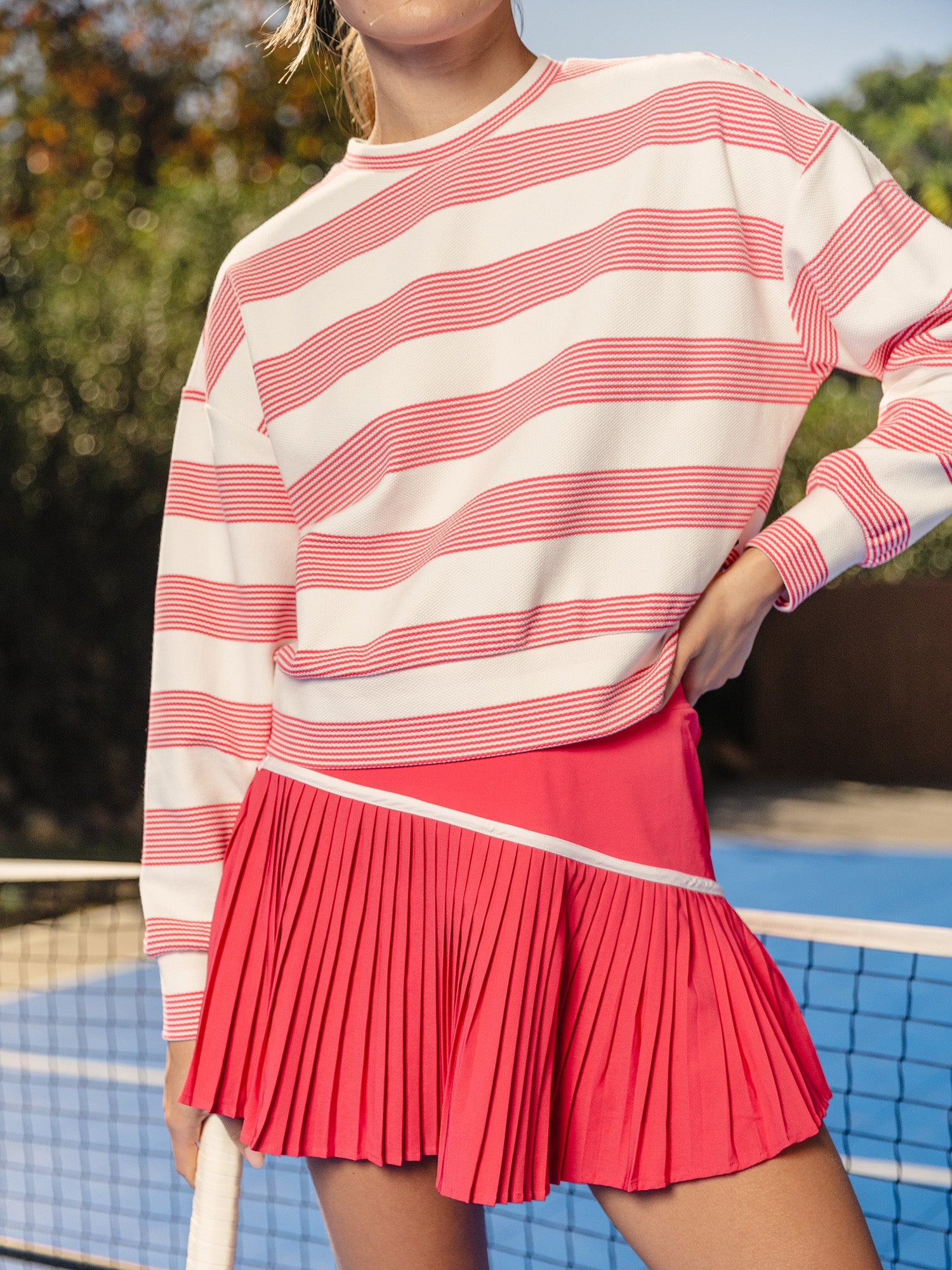 The Asymmetric Tennis Skort is made in our Tech Knit fabric featuring 4-way stretch, breathable, and quick drying properties. This skort pairs effortlessly with our Open Back Tennis Bra for a perfect fit on the courts and off.